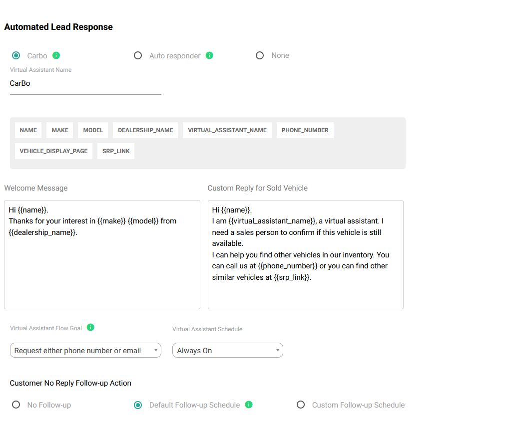 CarBo is TapOverdrive’s innovative AI virtual assistant that answers shopper’s inquiries online 24/7 in both English and Spanish. CarBo instantly responds to inquiries and questions to engage and nurture online shoppers while they wait for a salesperson. The assistant gathers contact information and customer preferences and shares important product details, getting smarter with every conversation.