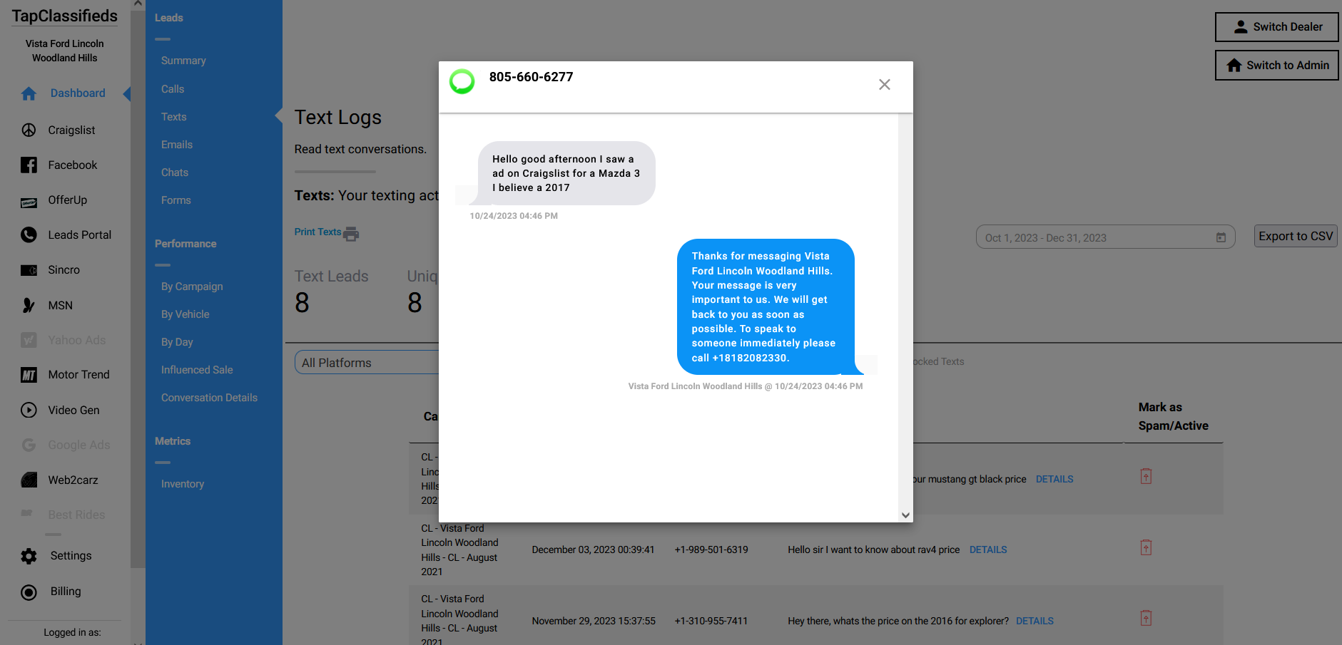 Track phone calls and text messages with Leads Portal across all digital and traditional marketing campaigns. This solution is simple to deploy, measure, and track by campaign and publisher. Leads Portal can be supported as a stand-alone product or integrated with other TapOverdrive solutions.